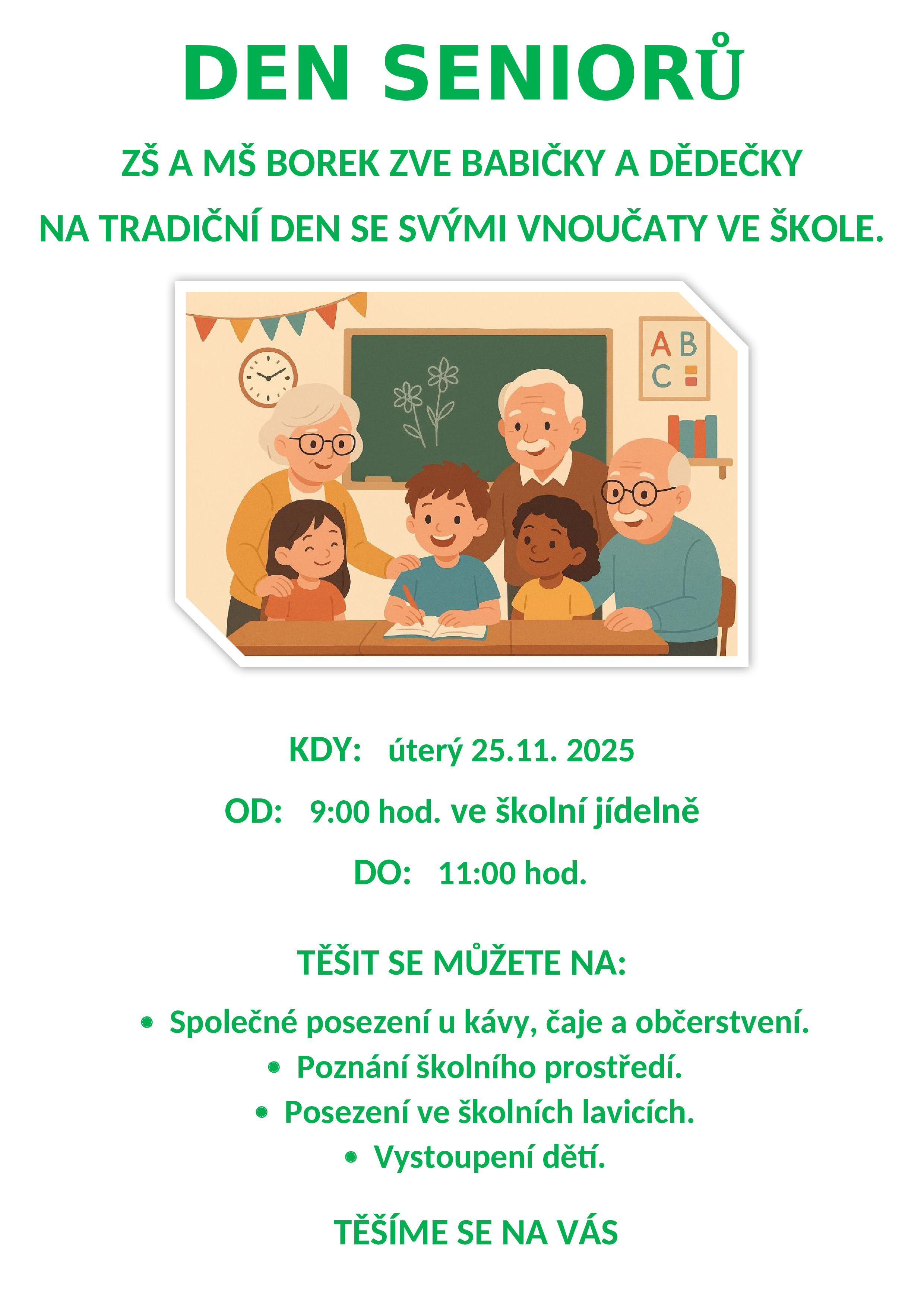 Den seniorů v ZŠ a MŠ Borek - pozvání na tradiční den se svými vnoučaty ve škole